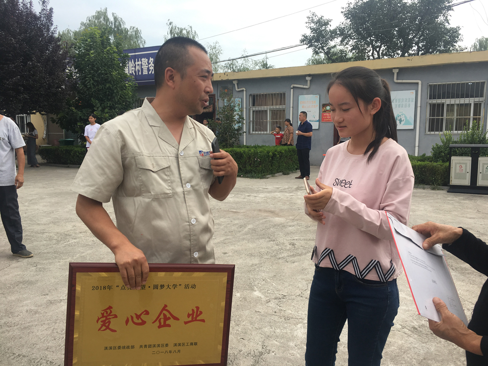 8.25日,金秋開(kāi)學(xué)之際,由淇濱區(qū)委統(tǒng)戰(zhàn)部、共親團(tuán)淇濱區(qū)委、淇濱區(qū)工商聯(lián)組織愛(ài)心企業(yè)舉行2018年度“點(diǎn)亮希望,圓夢(mèng)大學(xué)”助學(xué)金發(fā)放活動(dòng)。我公司銷(xiāo)售部代表張經(jīng)理參加了此次助學(xué)捐贈(zèng)活動(dòng)。