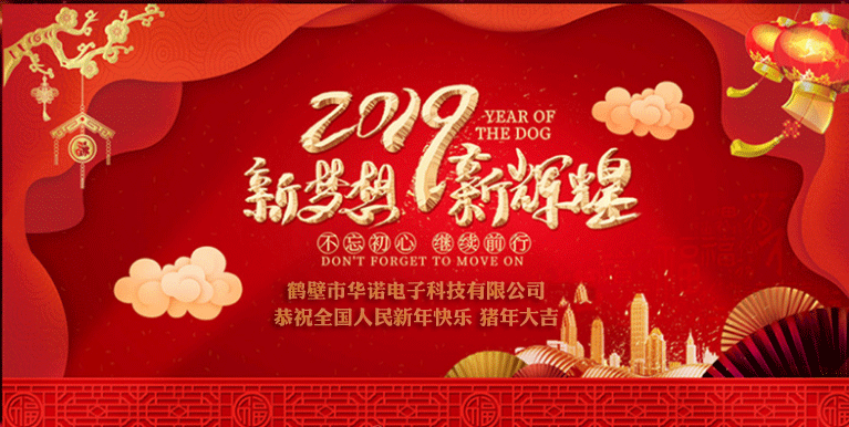 尊敬的廣大新老客戶: 鶴壁市華諾電子科技有限公司全體員工在此深深感謝您長(zhǎng)期以來(lái)對(duì)我司的支持與厚愛(ài)!向您致以誠(chéng)摯的祝福和問(wèn)候! 根據(jù)《國(guó)務(wù)院辦公廳關(guān)于2019年節(jié)...